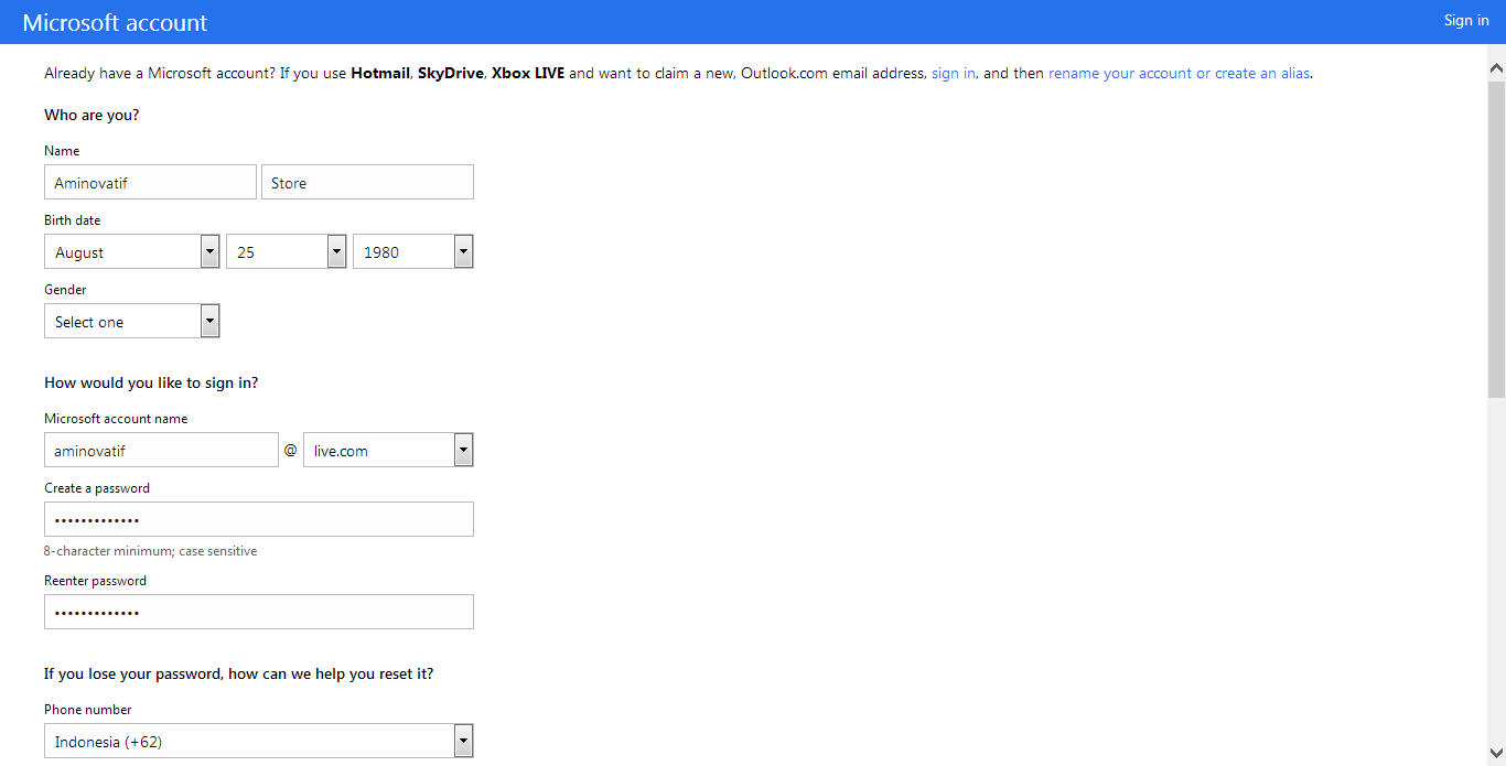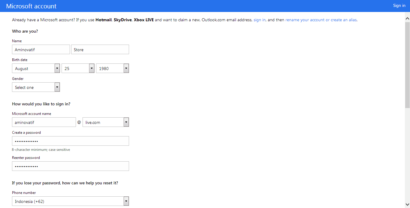 3. Setelah proses selesai, anda akan mendapatkan akun dari salah satu domain live.com , outlook.com, atau hotmail.com