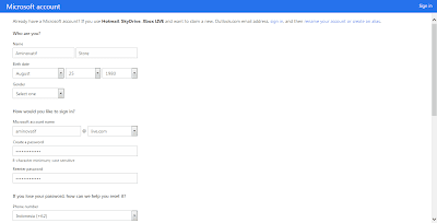 1. Buka URL http://live.com dan daftarkan diri anda disana untuk mendapatkan akun outlook. Sign Up Now!