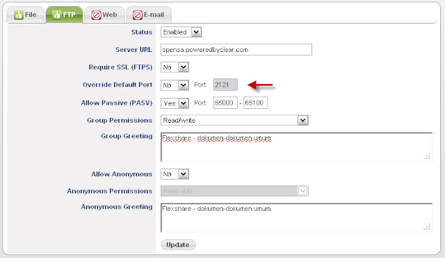 Flexshares dapat juga diakses melalui FTP, syaratnya FTP server di ClearOS harus sudah jalan (enable).