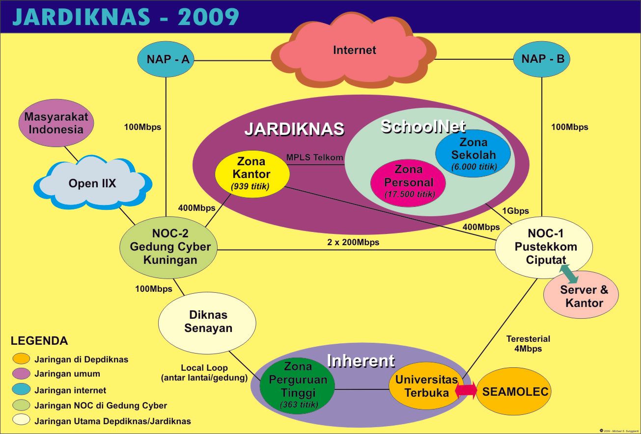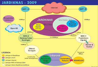 JARDIKNAS merupakan intranet/Wide Area Network (WAN) yang menghubungkan antara simpul pendidikan di seluruh Indonesia/nasional yang terdiri dari 4 zona jaringan, meliputi: