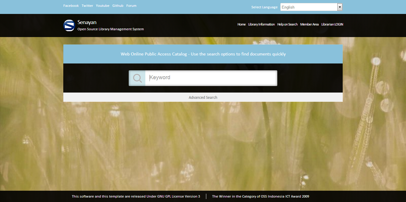 Senayan adalah program managemen sistem perpustakaan, berlisensi Opensource. Info lebih lanjut tentang Senayan bisa di dapat di website http://slims.web.id/web/