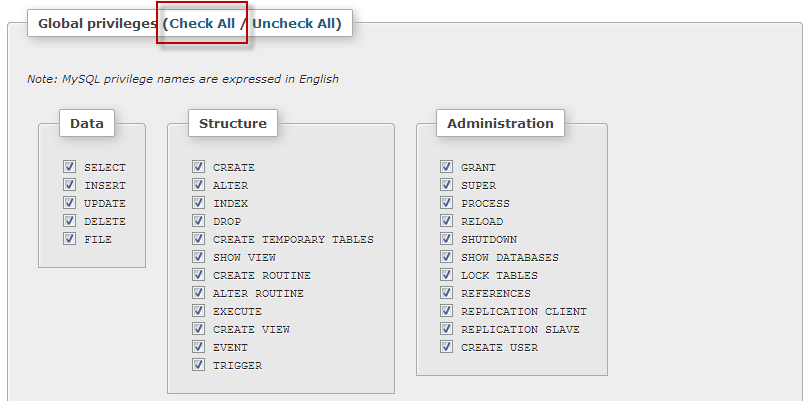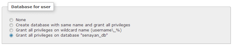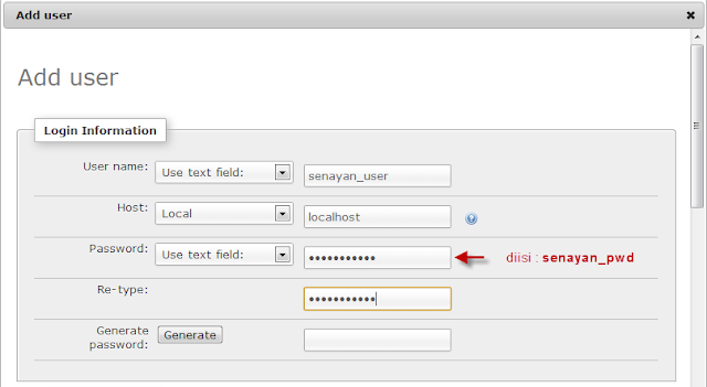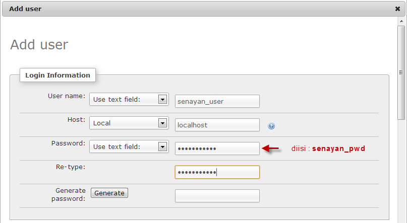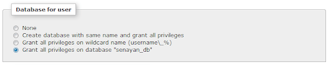 Pilih database ‘senayan_db’ , kemudian menu Previleges – Add users